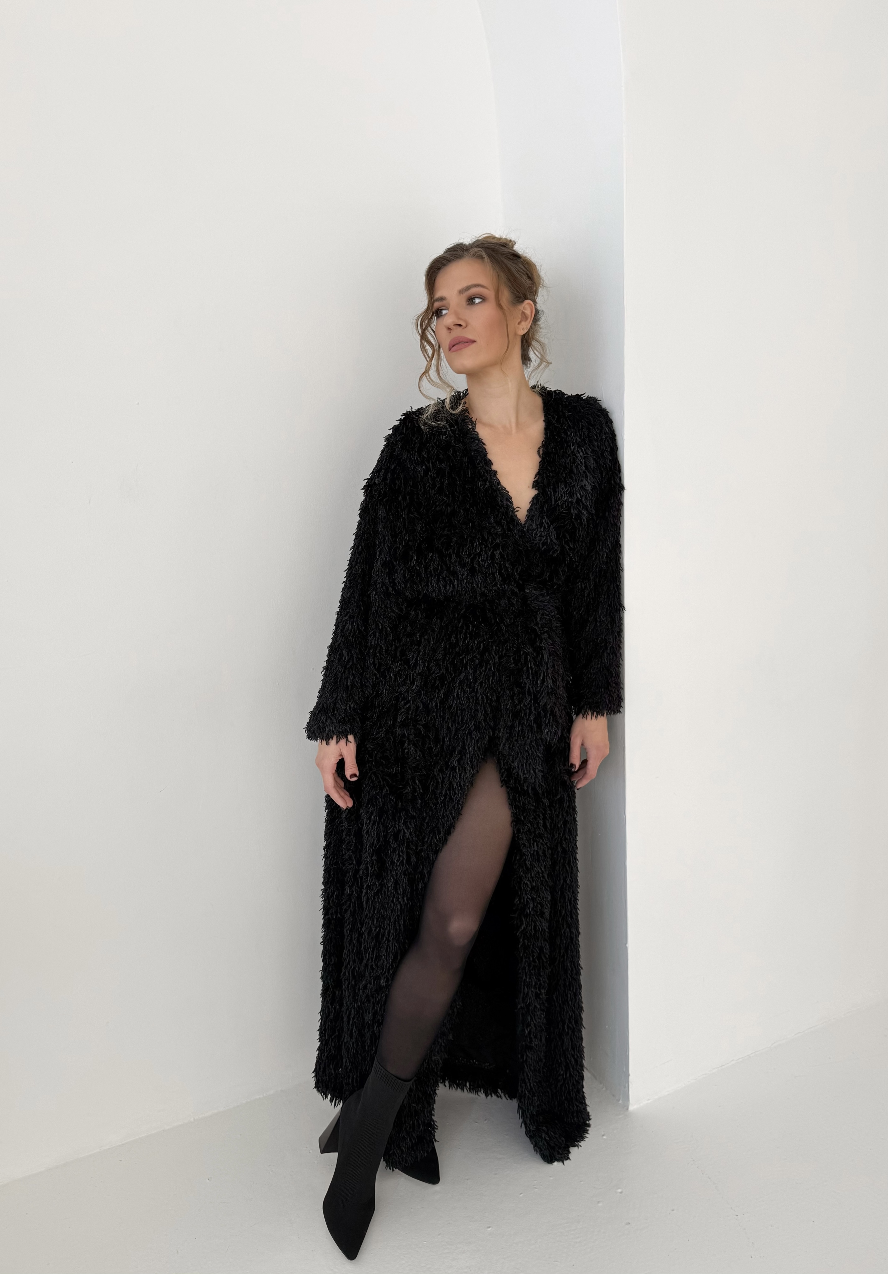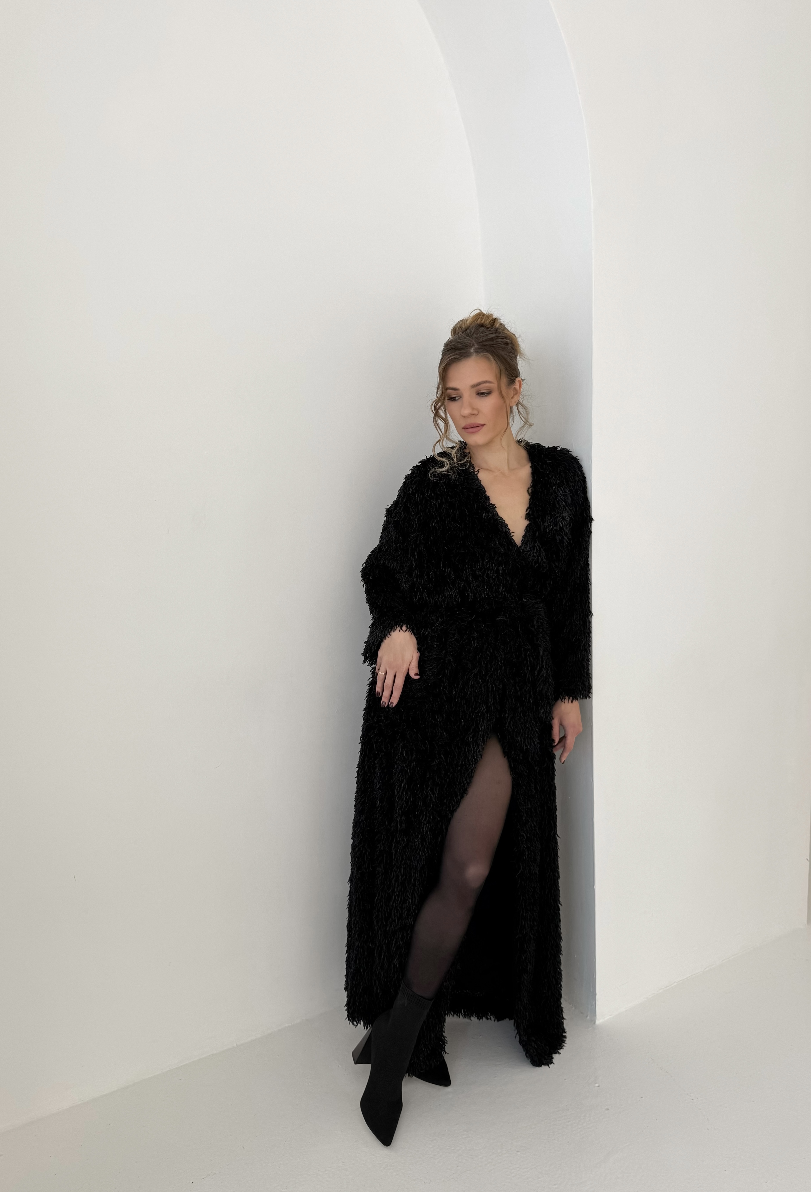 Кимоно с перьями в пол