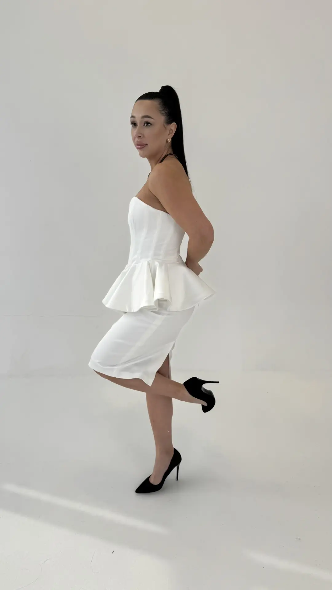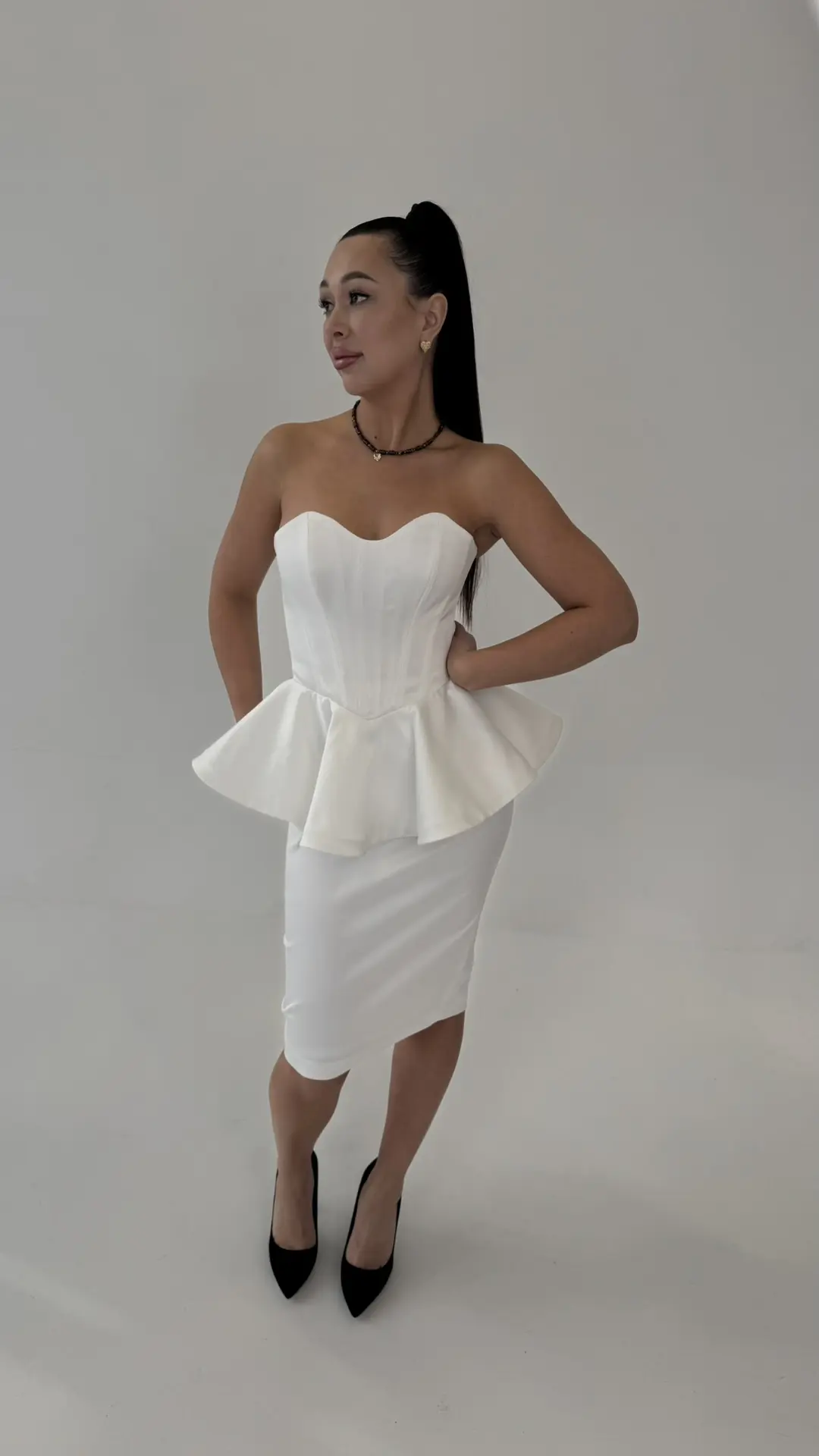 Очень красиво рисует фигуру за счет своего кроя, интересная шнуровка по спинке. Ткань - атлас. Есть еще в черном цвете (ткань матовая).