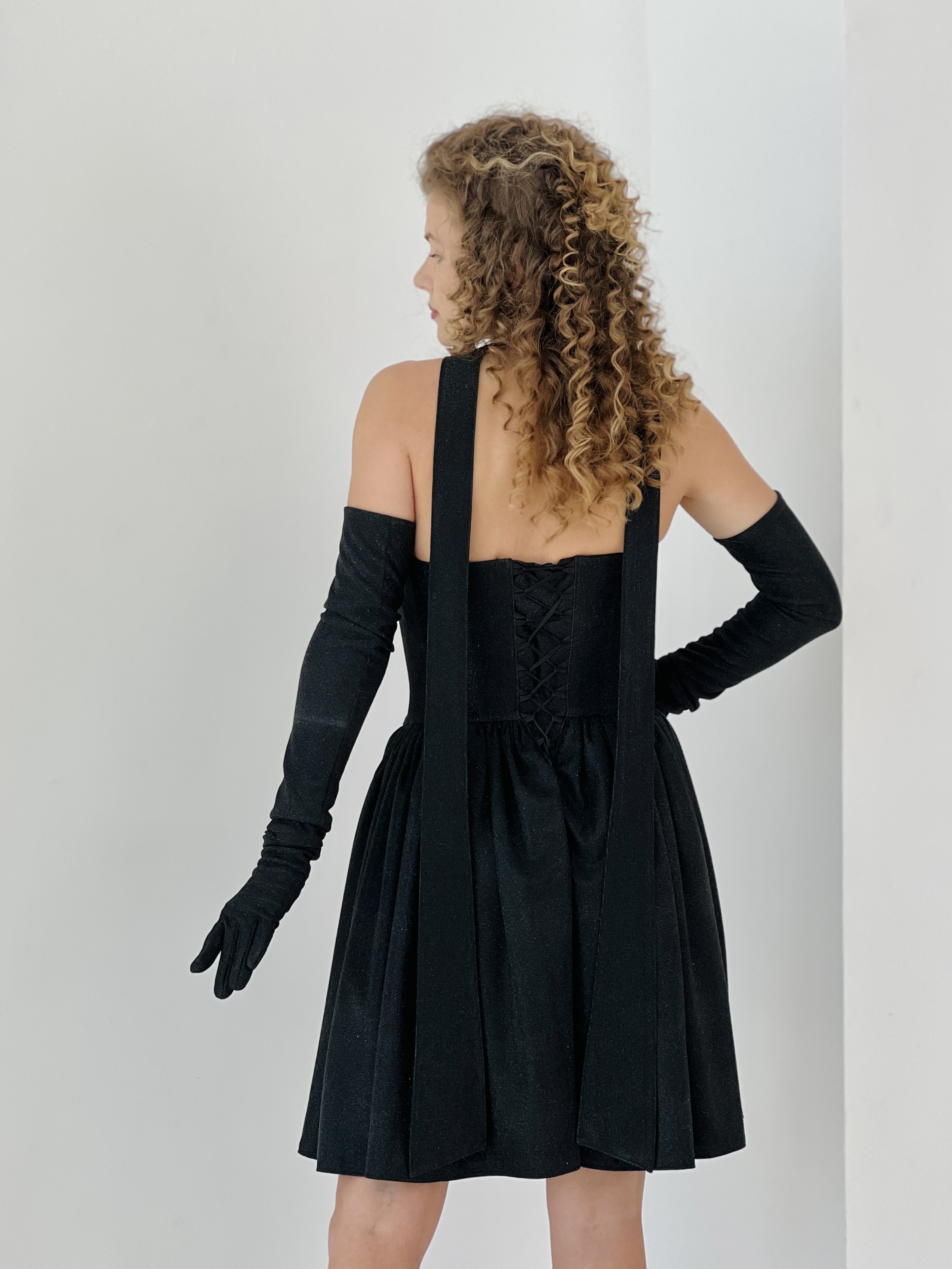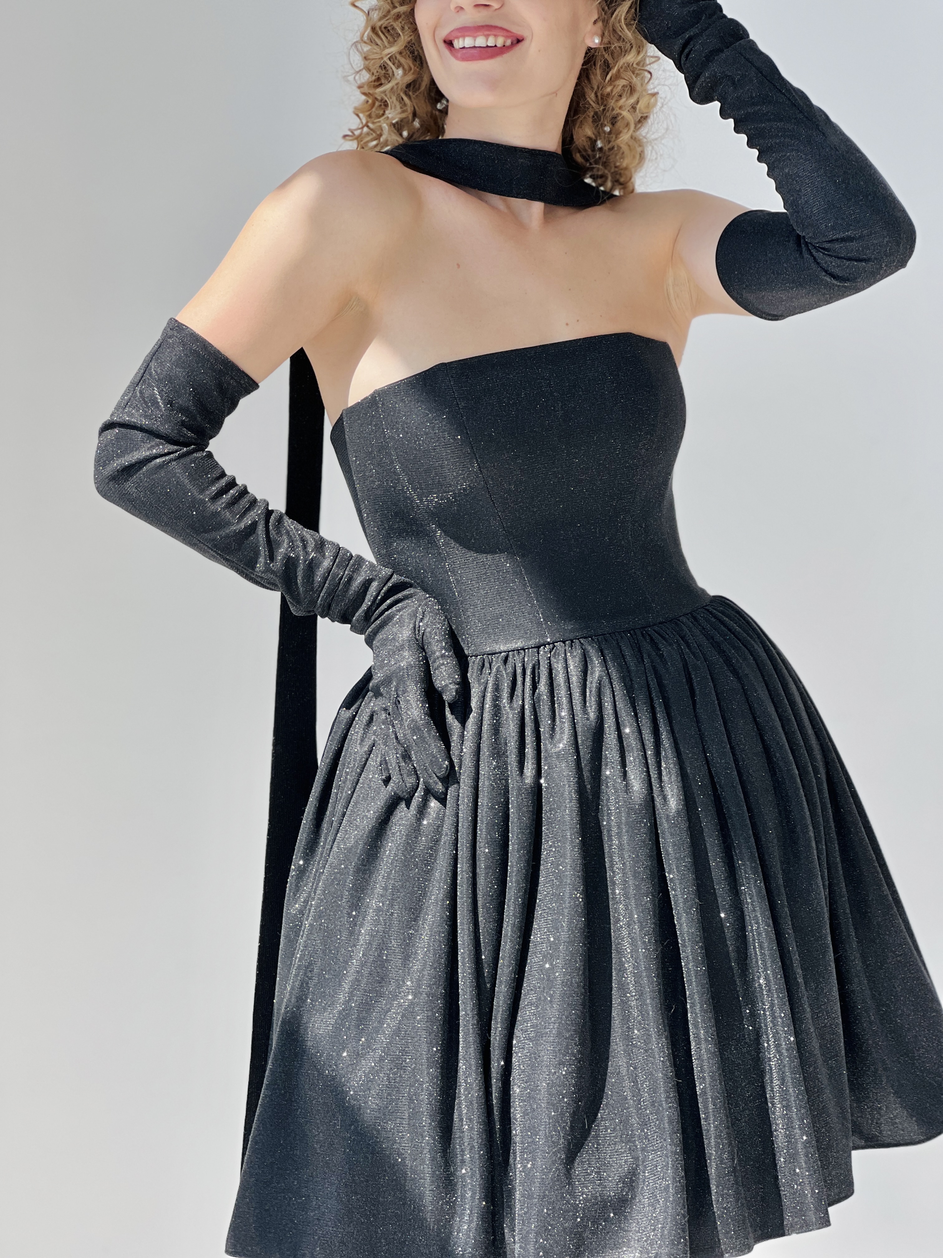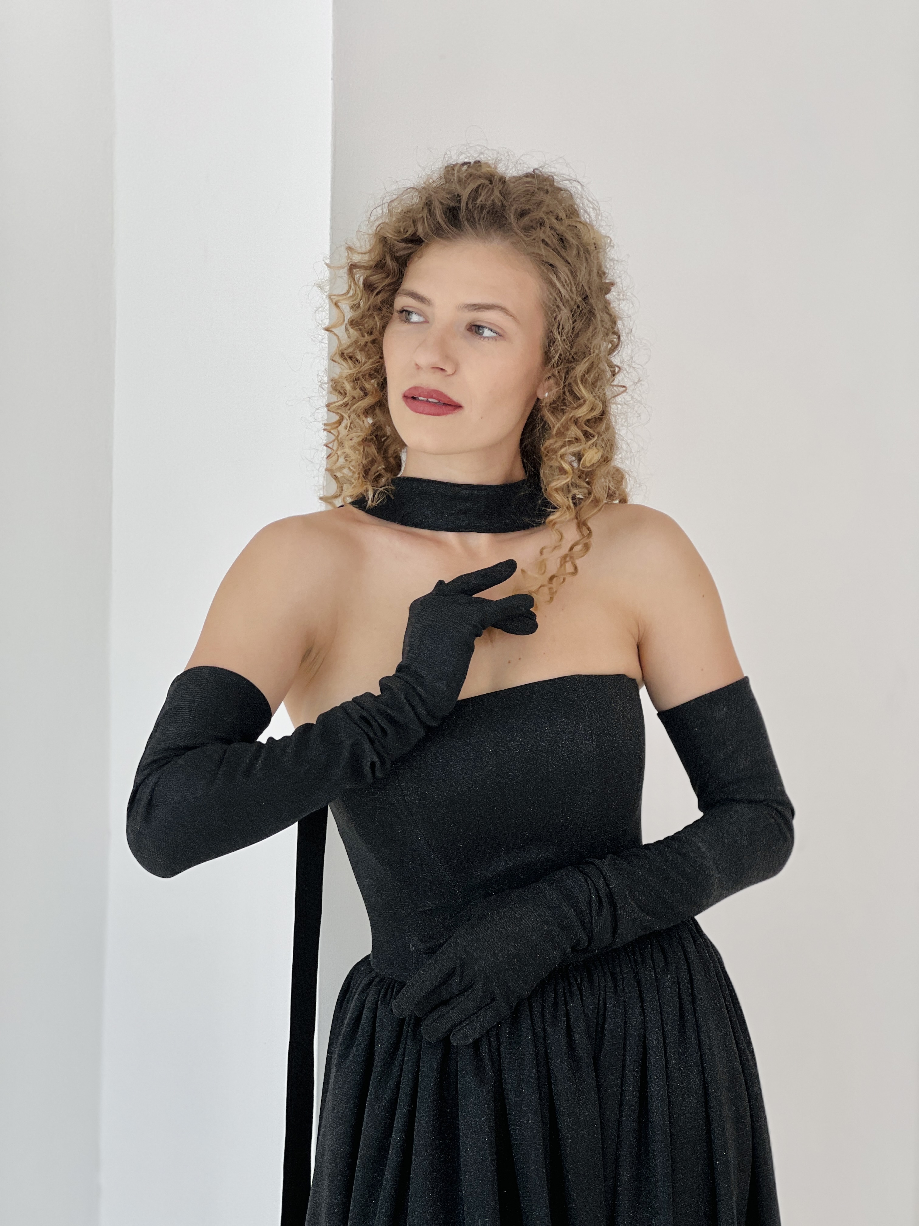Ощутите себя звездой вечера в этом роскошном корсетном платье! Стильный крой подчеркивает достоинства фигуры, а блестящая ткань добавляет образу неотразимости. В комплект входят изысканные перчатки, пышный съёмный подъюбник и стильная перелина на шею – все, чтобы создать безупречный образ. Вам останется лишь добавить улыбку и уверенность – остальное уже есть у этого платья!