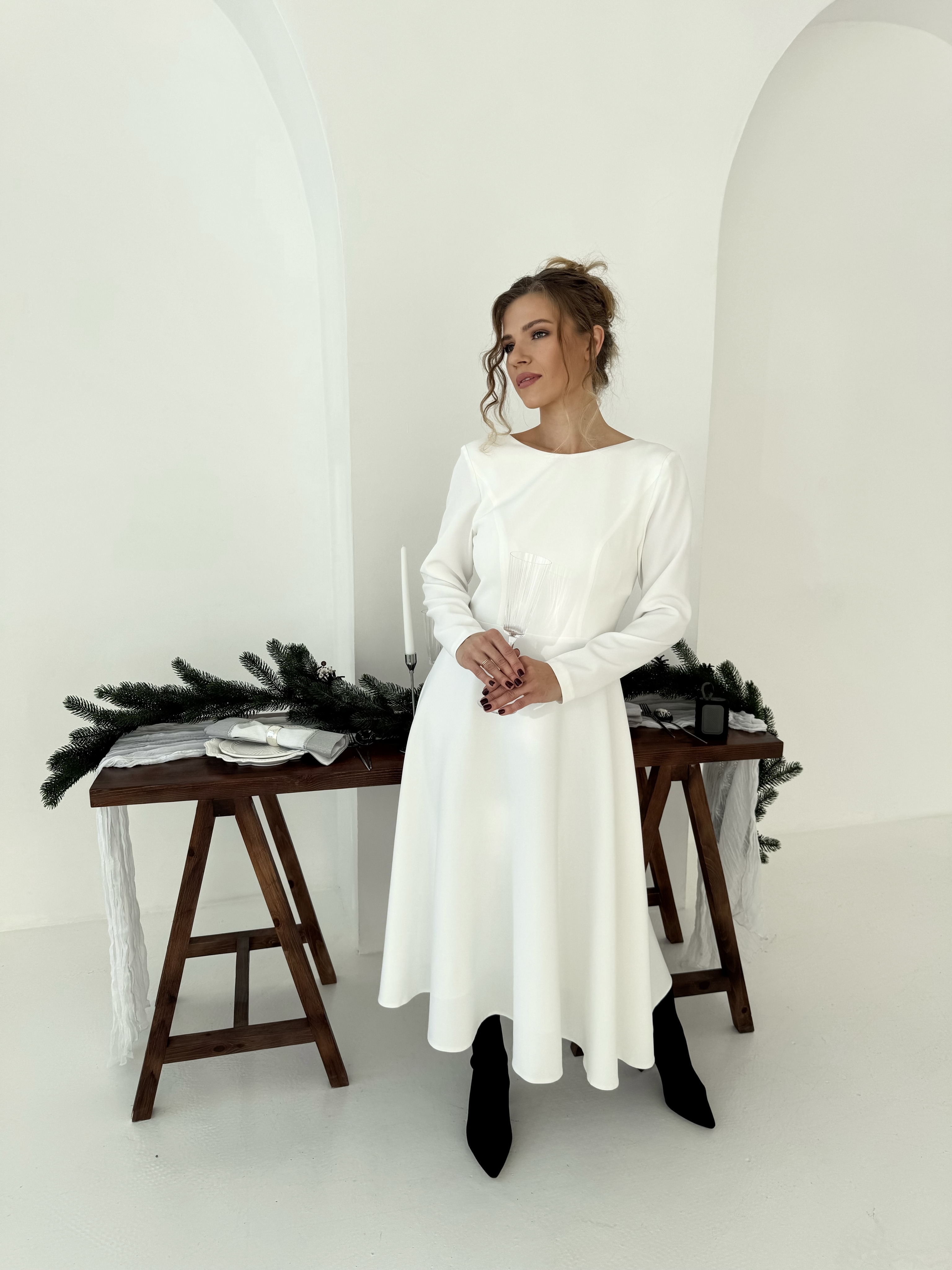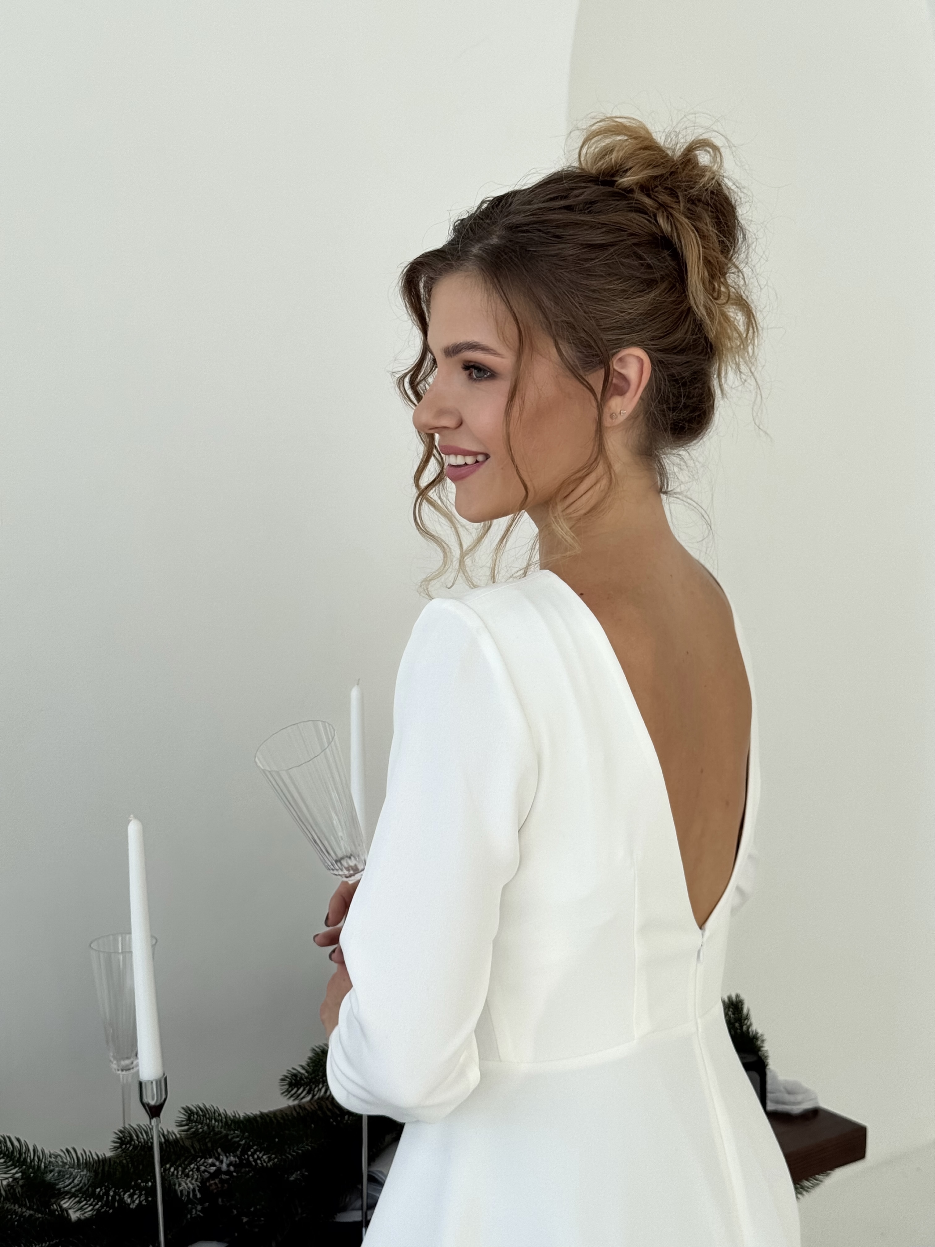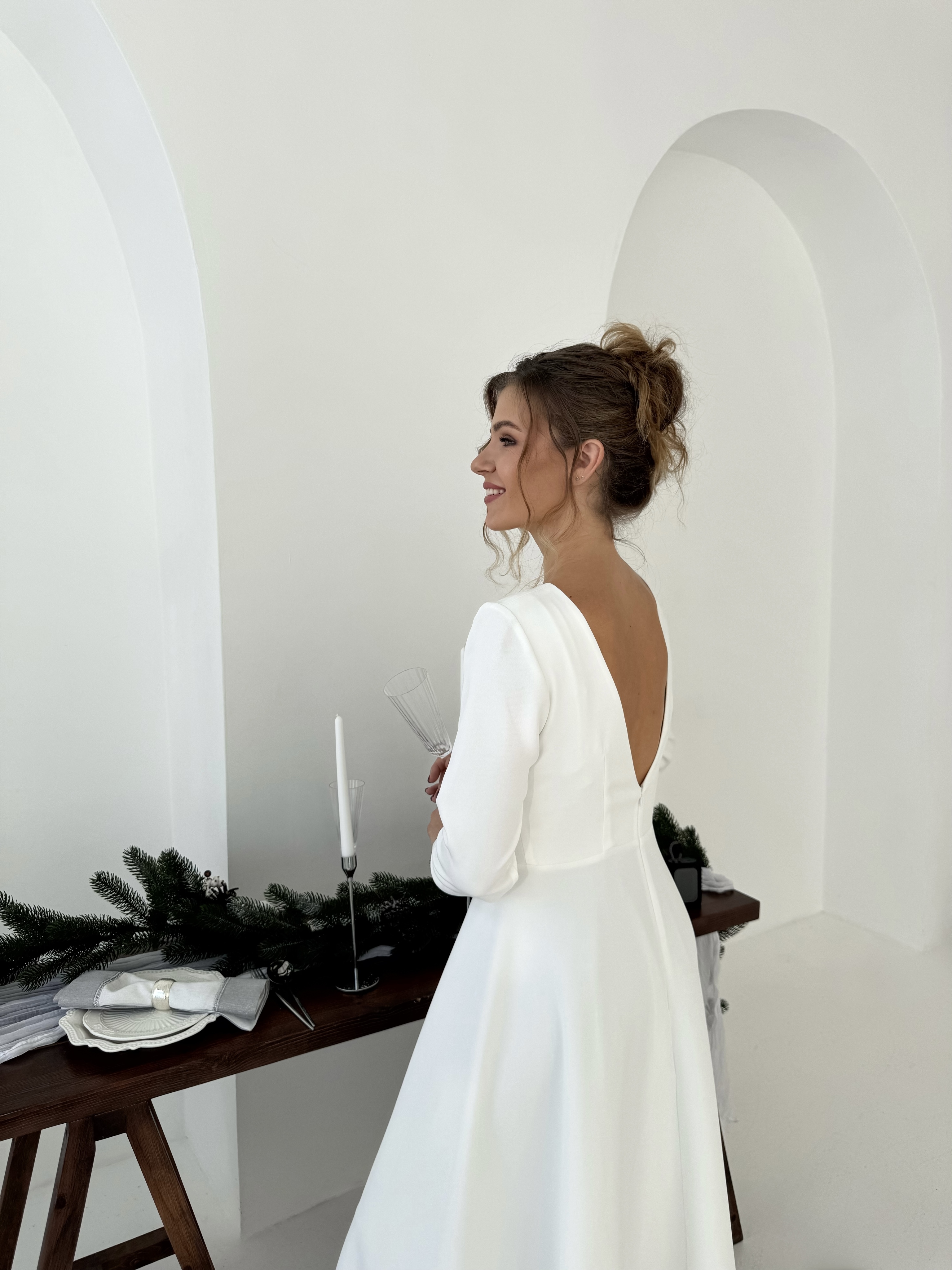 Это идеальное платье для торжественного мероприятия! Оно подчеркнёт вашу женственность и элегантность. Открытой спинки достаточно, чтобы добавить образу пикантности без излишней откровенности. Юбка-полусолнце эффектно струится при ходьбе, создавая чарующее движение. Платье подарит вам уверенность и станет хитом любого вечера.