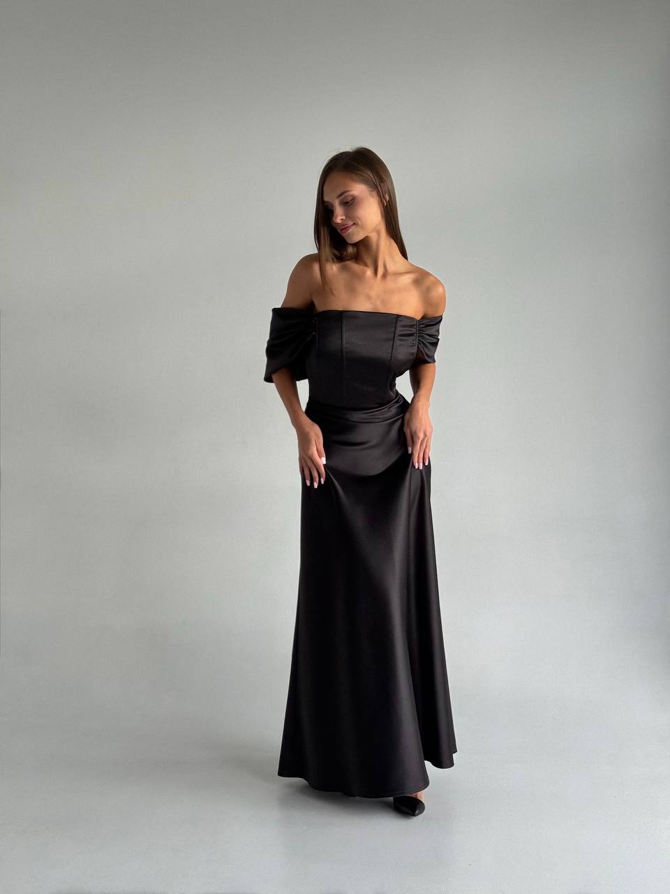 Вечернее платье в пол размера 48-52. Корсетная шнуровка позволит посадить платье идеально на фигуру.